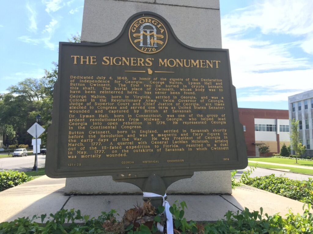 Hall was originally buried in a brick vault on his plantation overlooking the Savannah River. In 1848, however, his remains were moved to Augusta, Georgia, where they were reinterred beneath a monument honoring Georgia’s three signers of the Declaration of Independence: